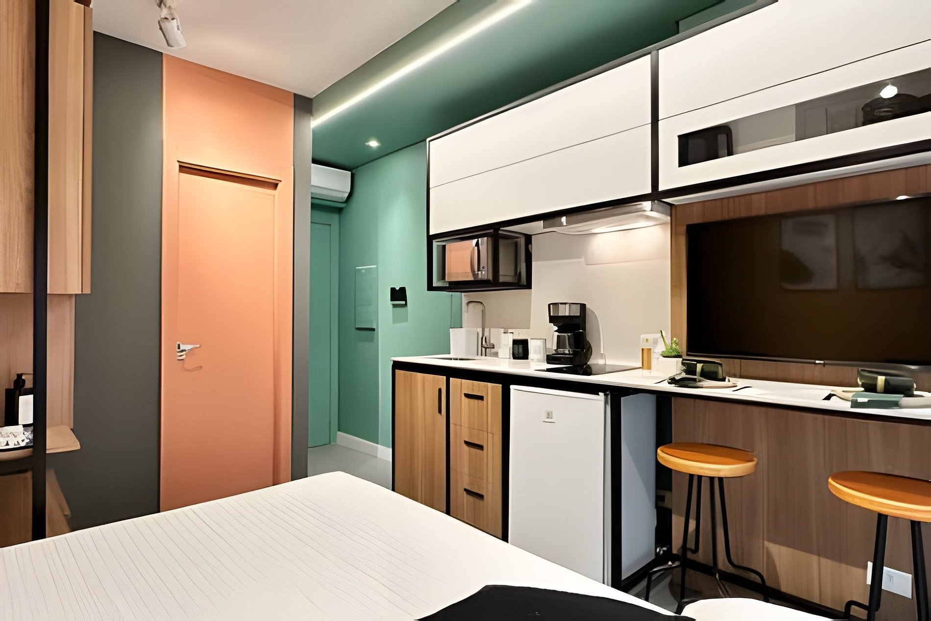 O hóspede terá acesso ao studio inteiro, exclusivamente para ele, sem que haja a necessidade de compartilhar.