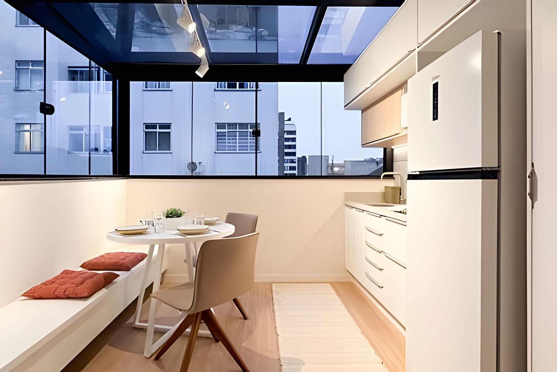 > Rooftop: Com uma vista linda da cidade, você pode usufruir do Rooftop, lembrando que a Jacuzzi é mediante reserva apenas para os hóspedes longas estadias (acima de 30 dias).