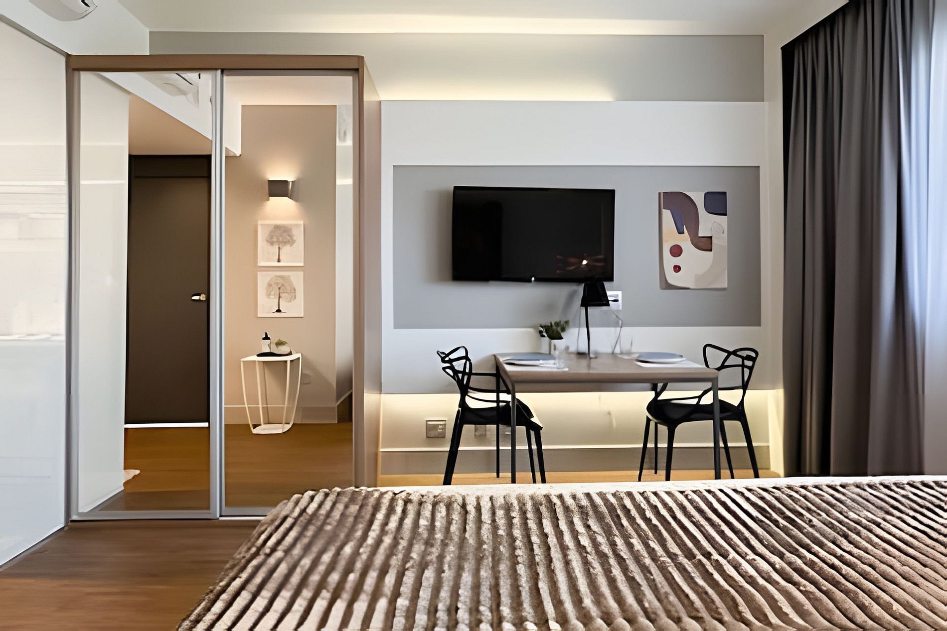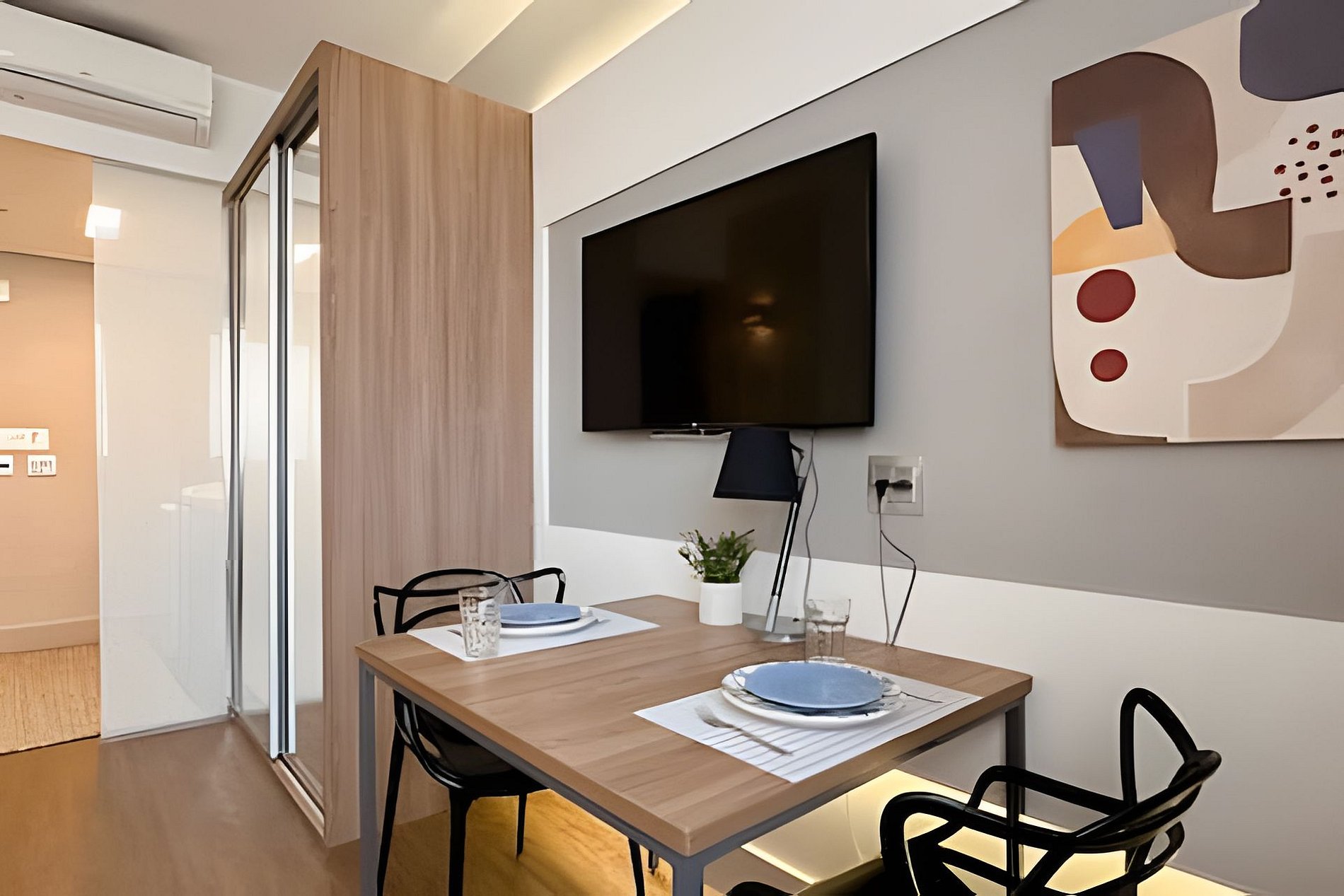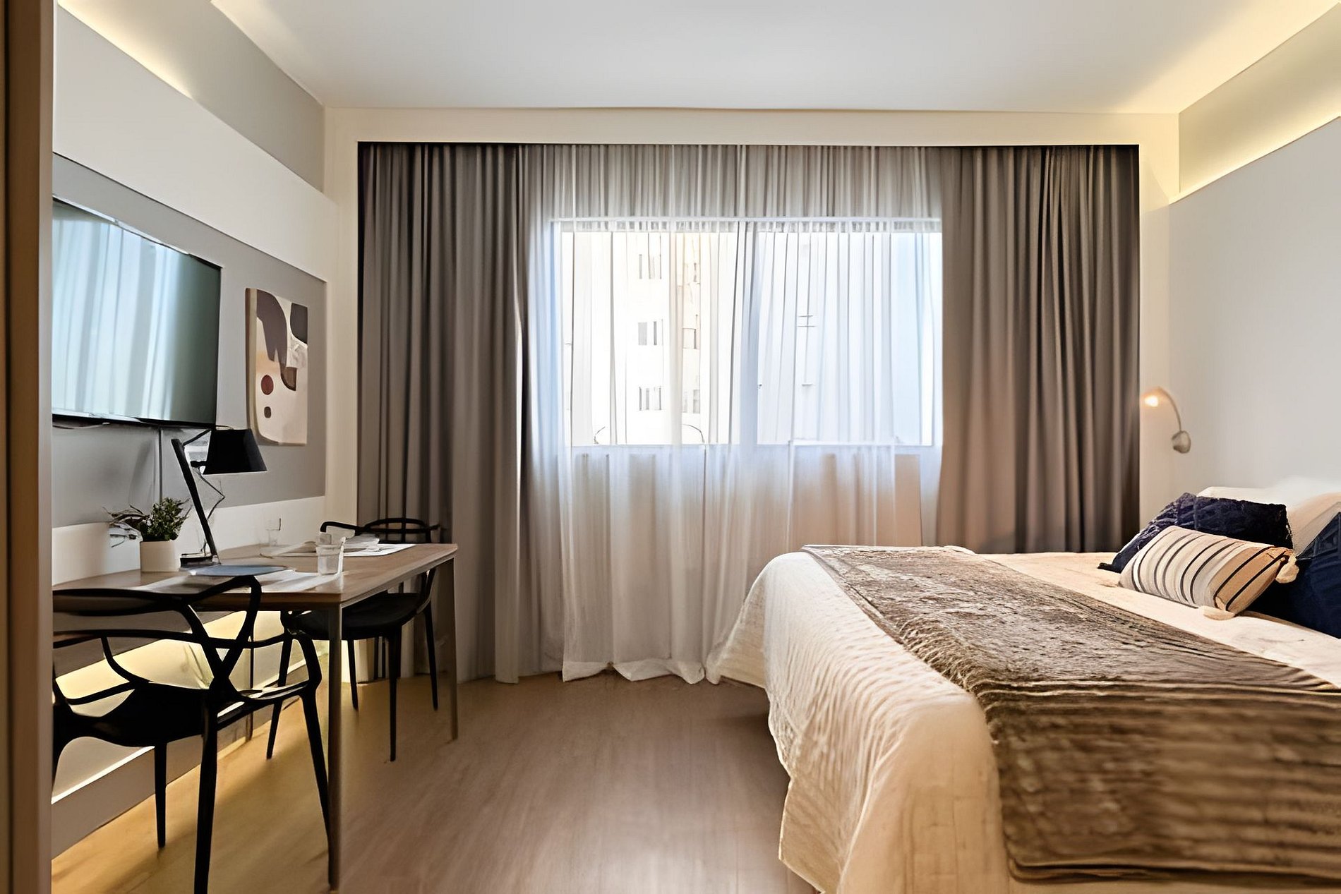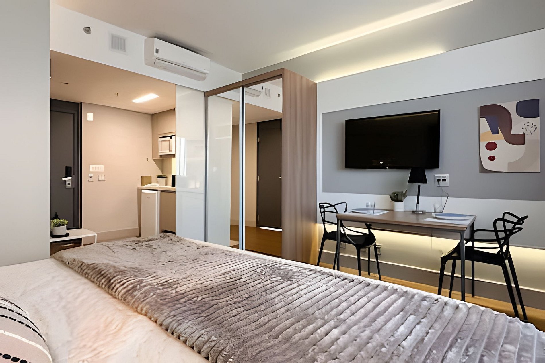 > Studio Completo: Você terá todo o studio à sua disposição, projetado para oferecer conforto e praticidade, com uma decoração moderna e todos os itens essenciais para uma estadia confortável.