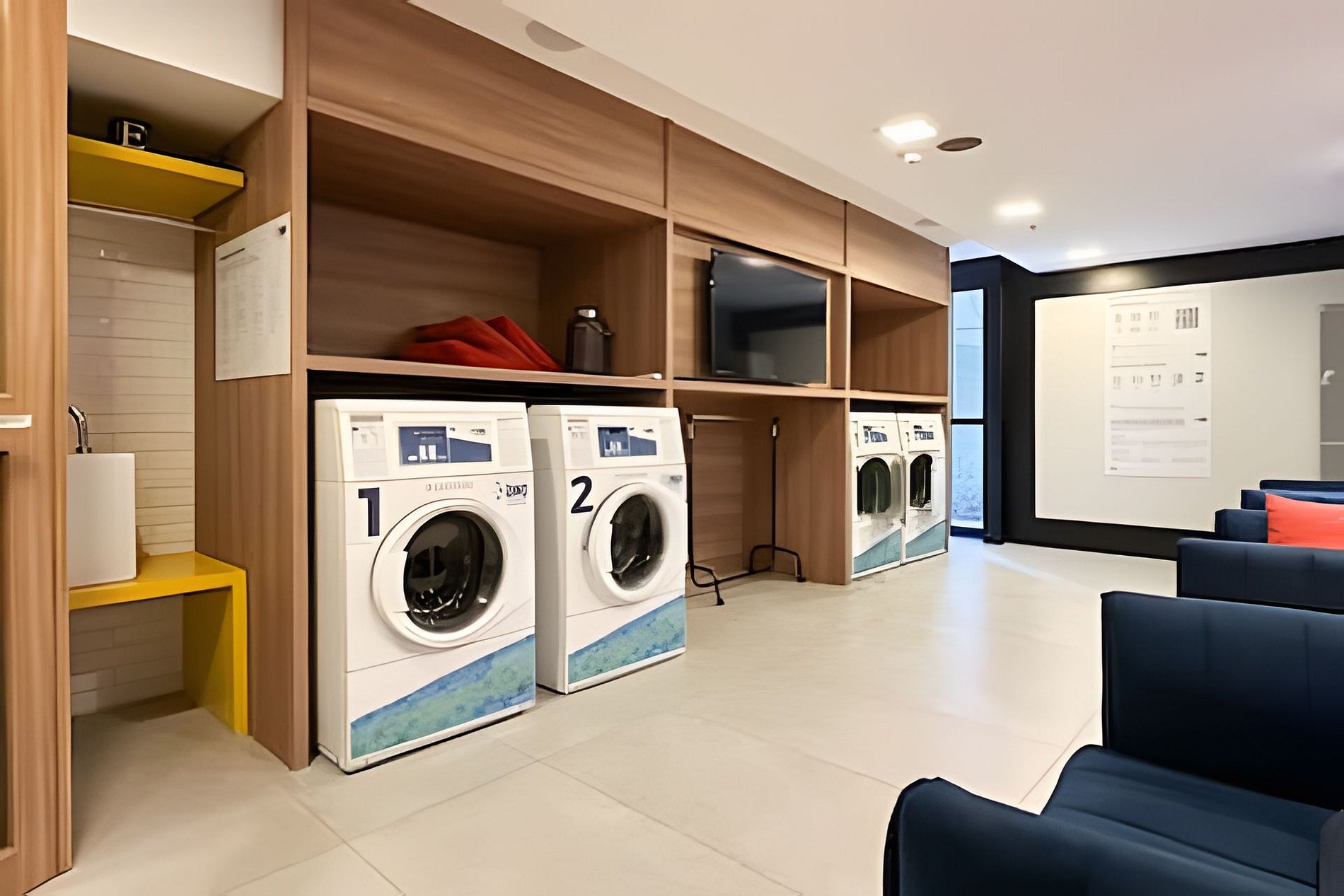 > Lavanderia OMO: A lavanderia é perfeita para sua conveniência, permitindo que você cuide das suas roupas a qualquer momento com o custo de R$ 19,00 por ciclo de lavagem ou R$ 16,00 por ciclo de secagem.