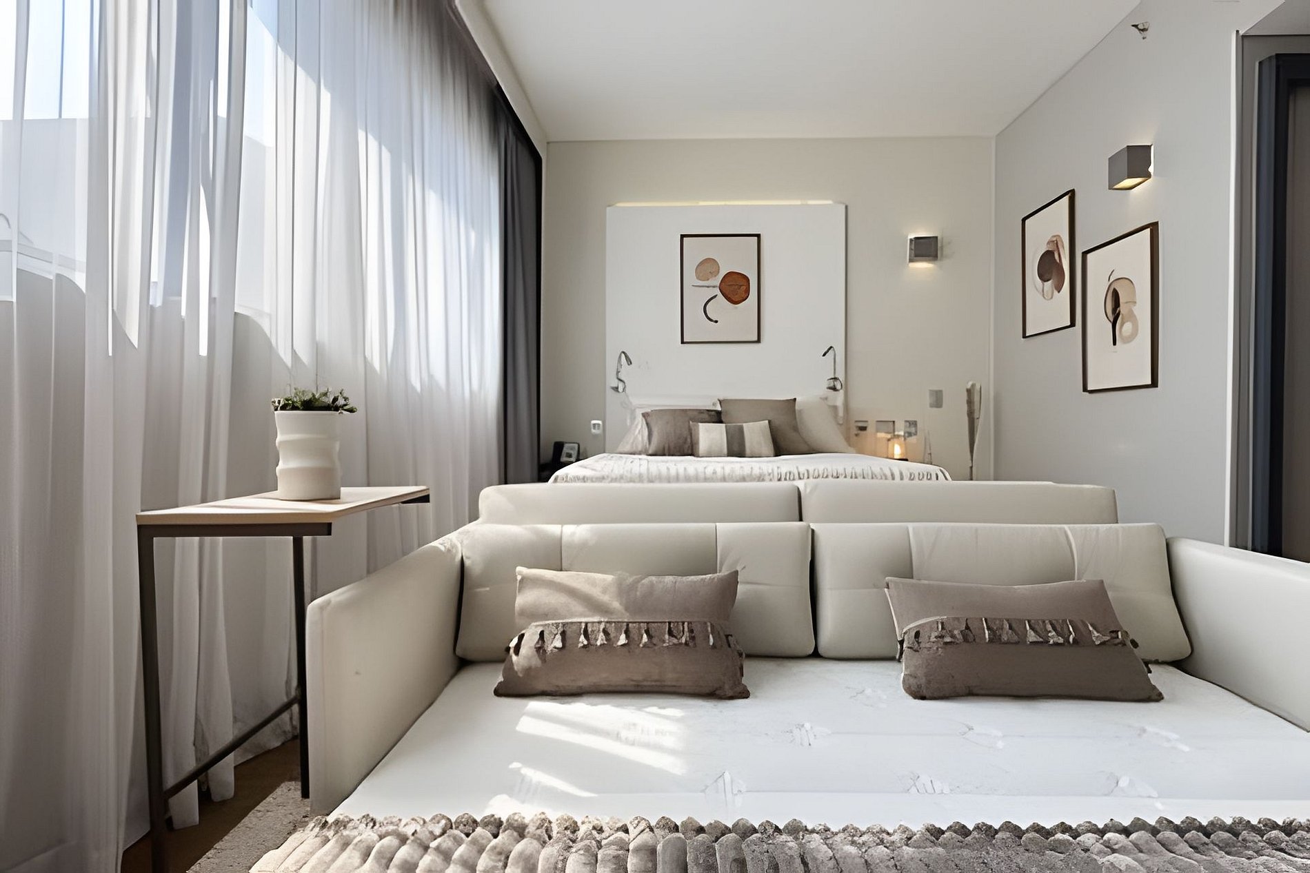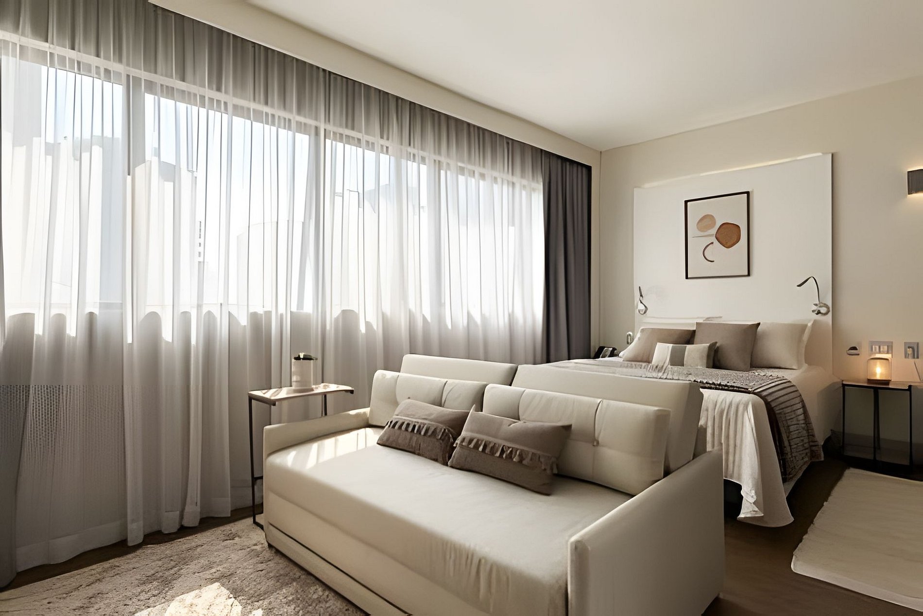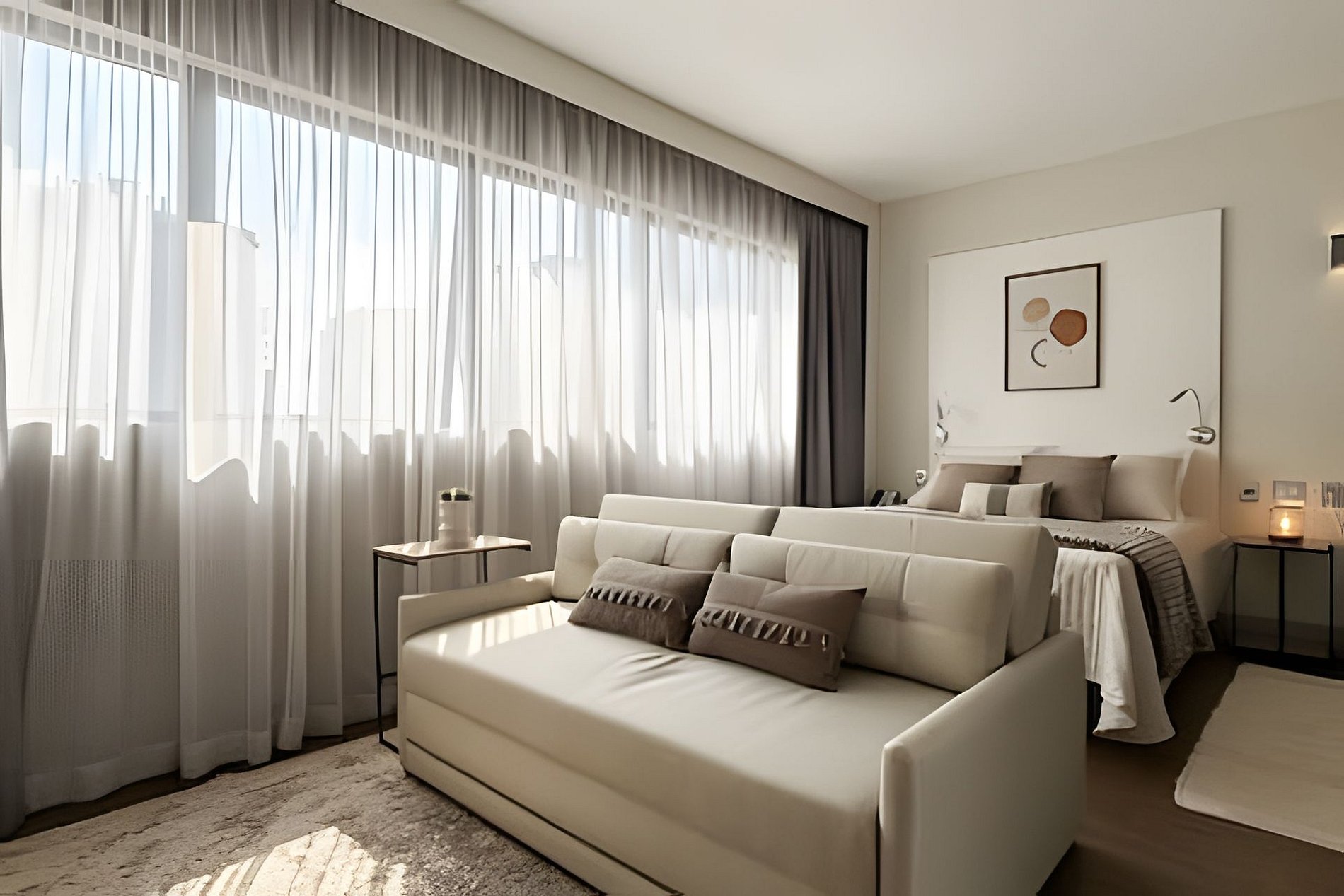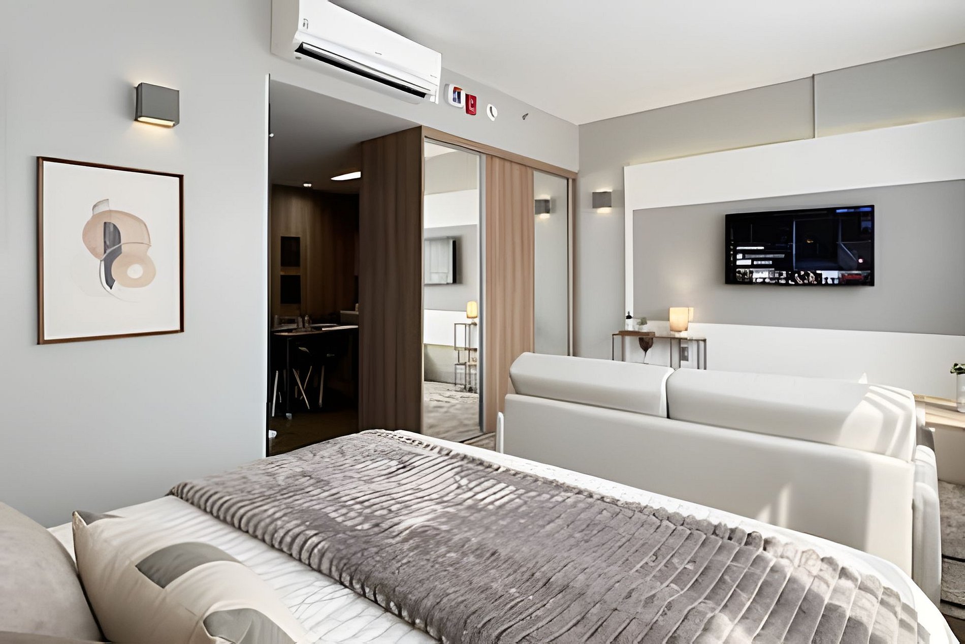 > Studio Completo: Você terá todo o studio à sua disposição, projetado para oferecer conforto e praticidade, com uma decoração moderna e todos os itens essenciais para uma estadia confortável.