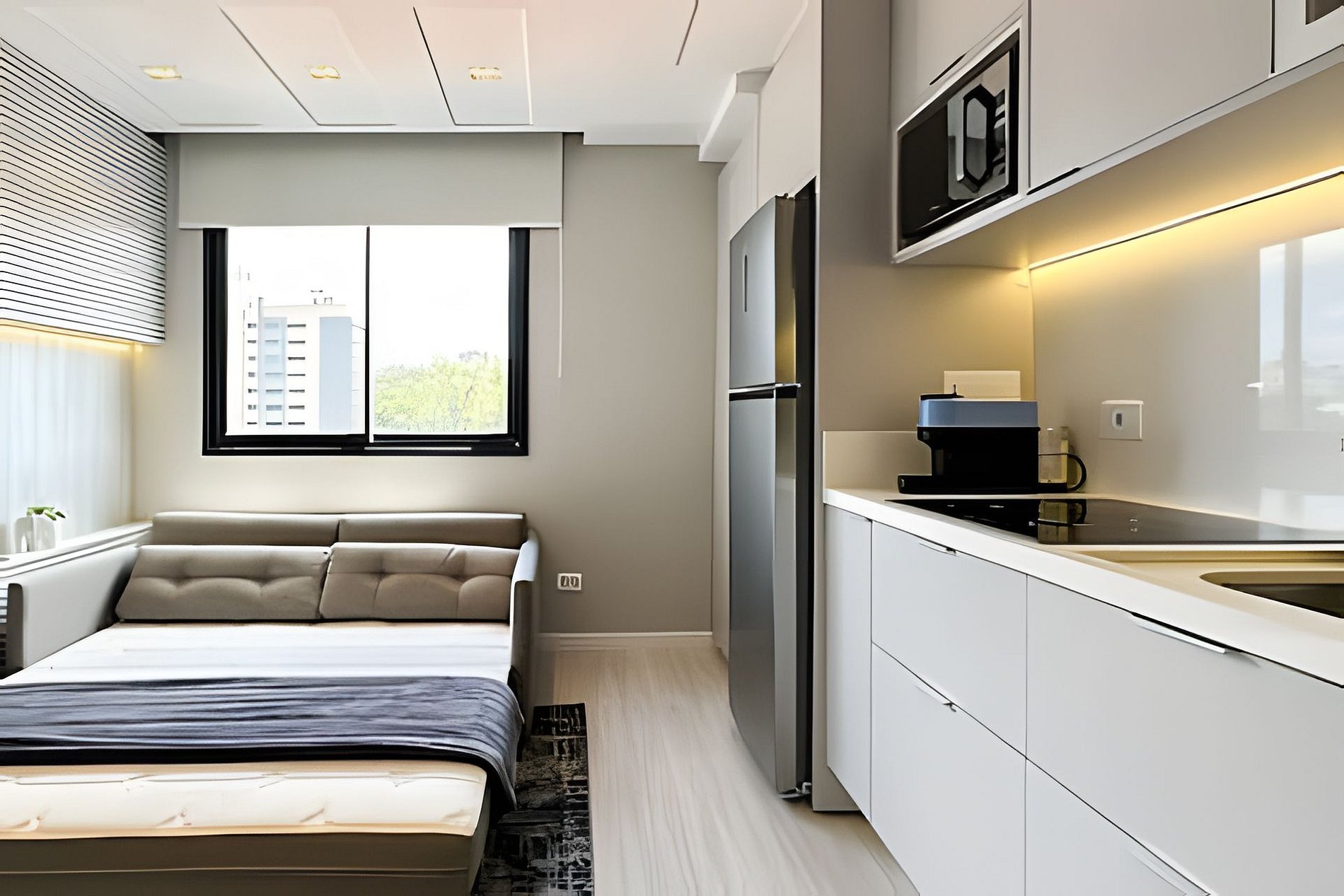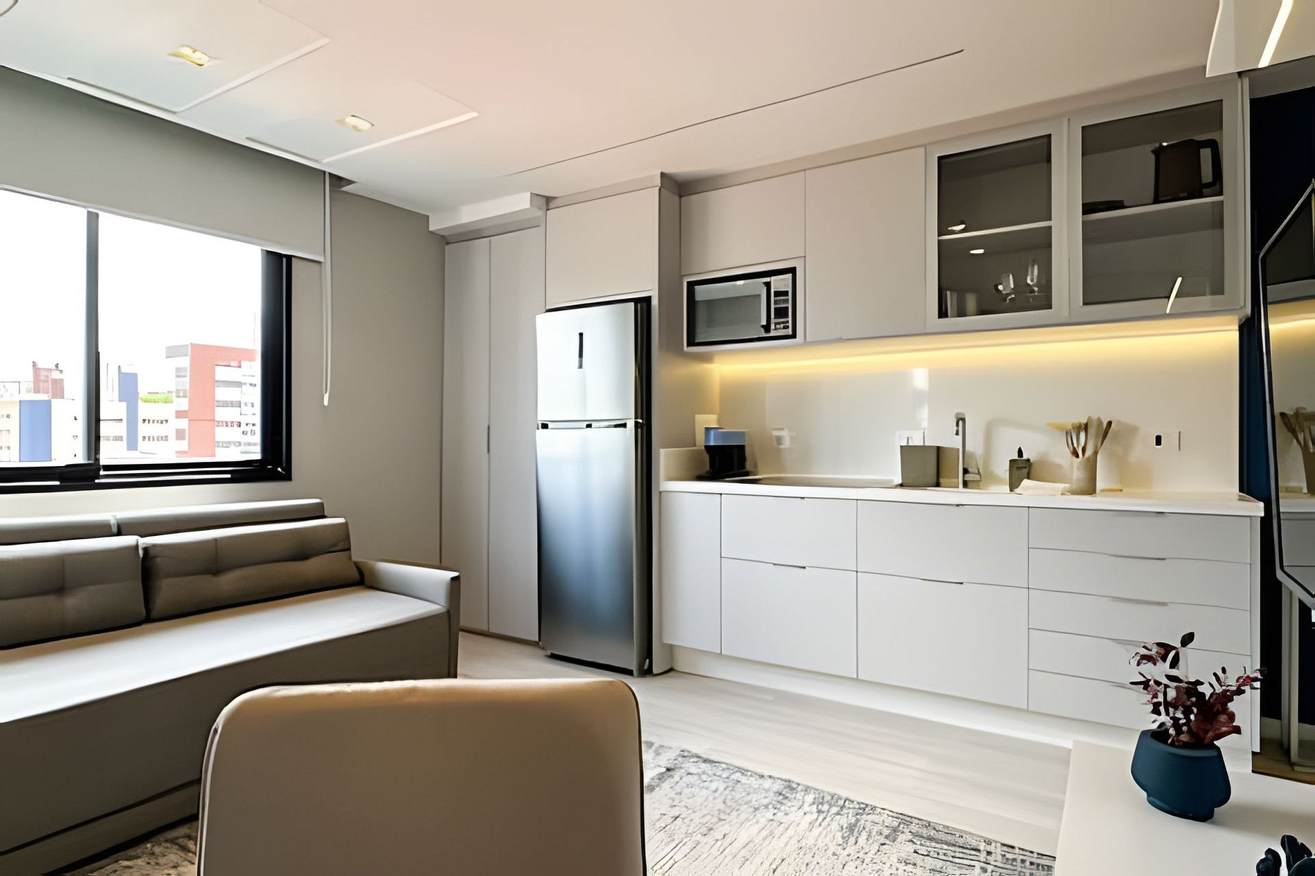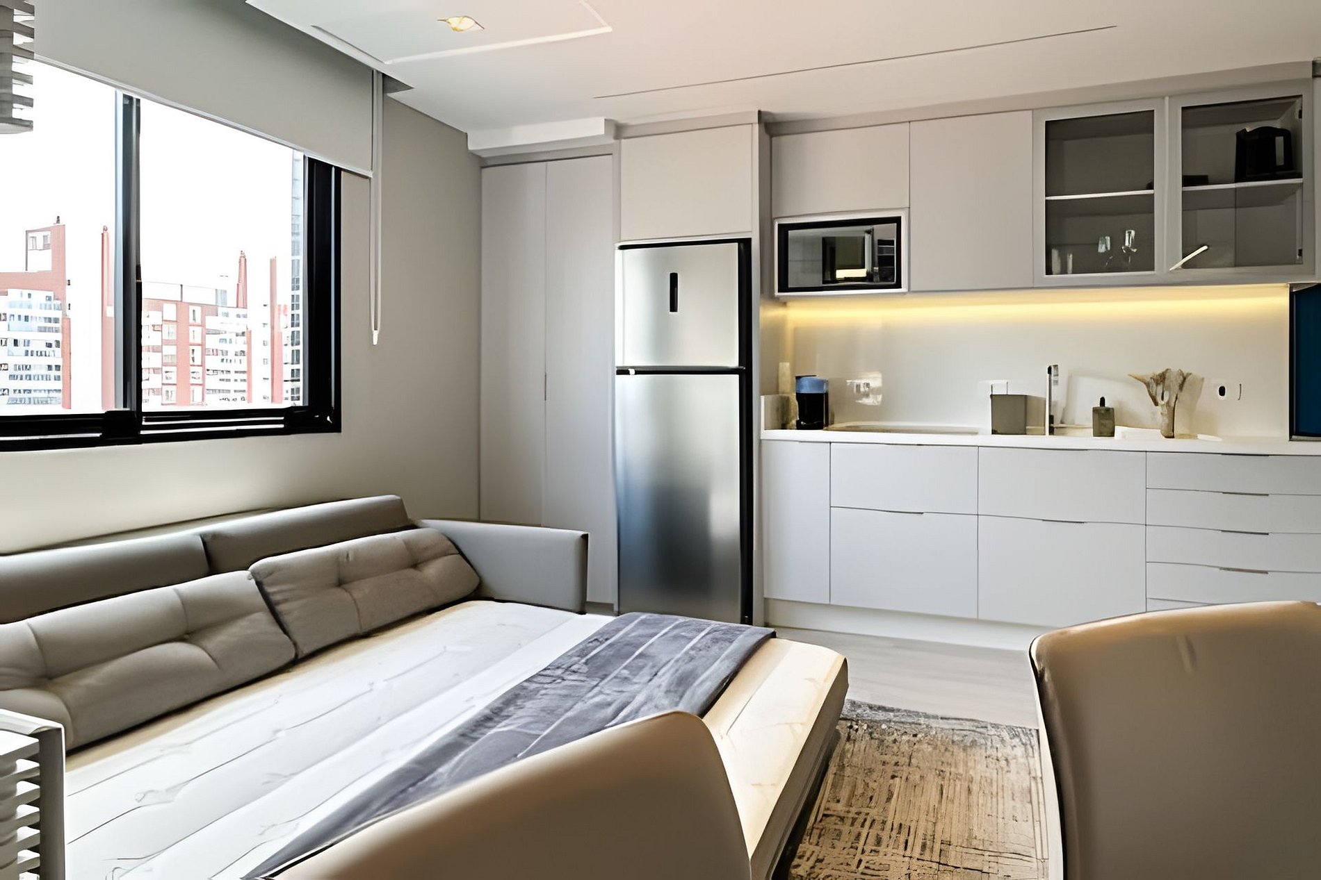 Studio moderno de 33m² no Walk Brigadeiro, ideal para sua estadia em Curitiba. A cozinha é completa e funcional, perfeita para preparar refeições. A sala de estar oferece um sofá-cama queen super confortável. O quarto possui uma cama de casal aconchegante e o banheiro conta com chuveiro a gás, proporcionando banhos relaxantes. Para completar, uma varanda agradável para desfrutar o ambiente. Tudo para garantir conforto e praticidade durante sua hospedagem!