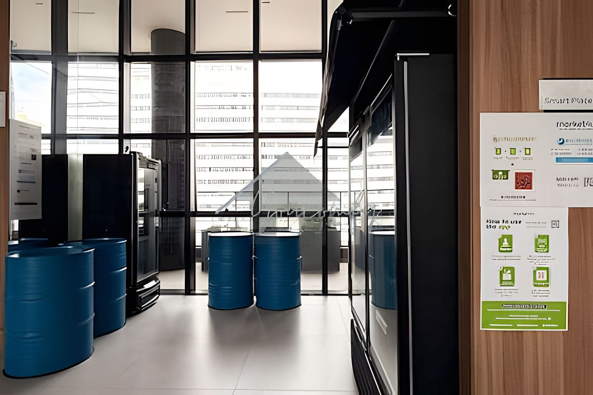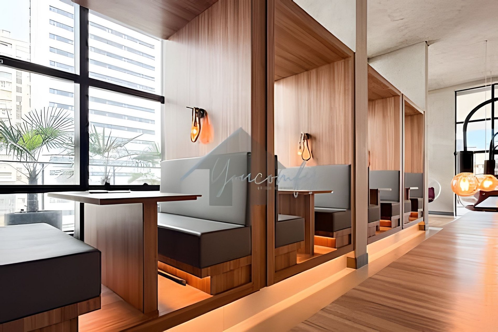 > Coworking: Aberto 24hrs por dia, em um amplo espaço com mesas, banquetas e puffs.