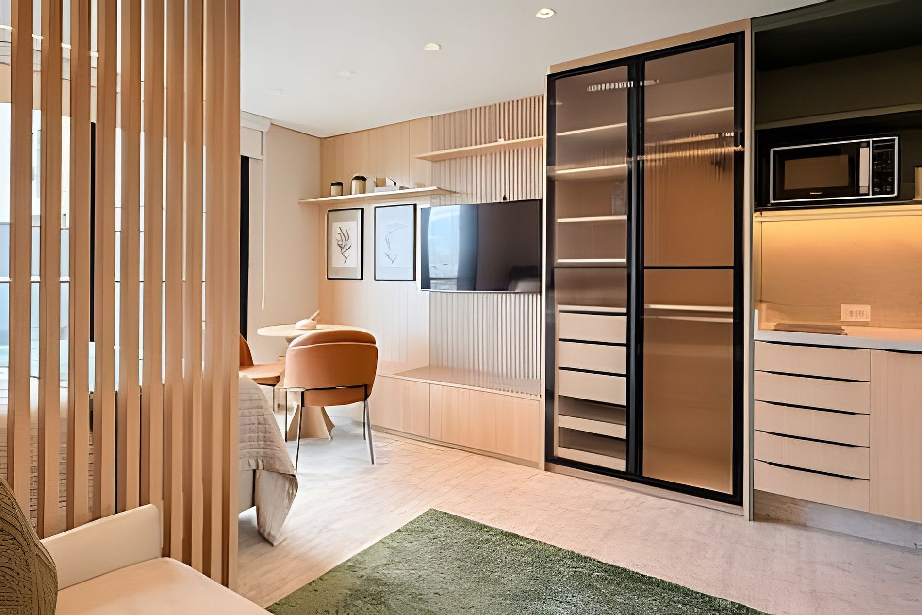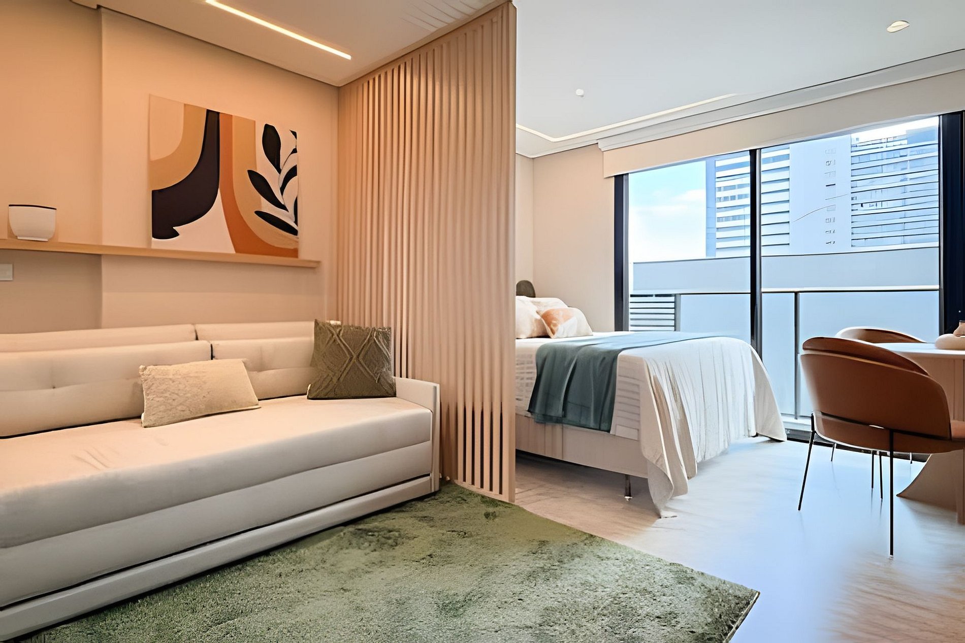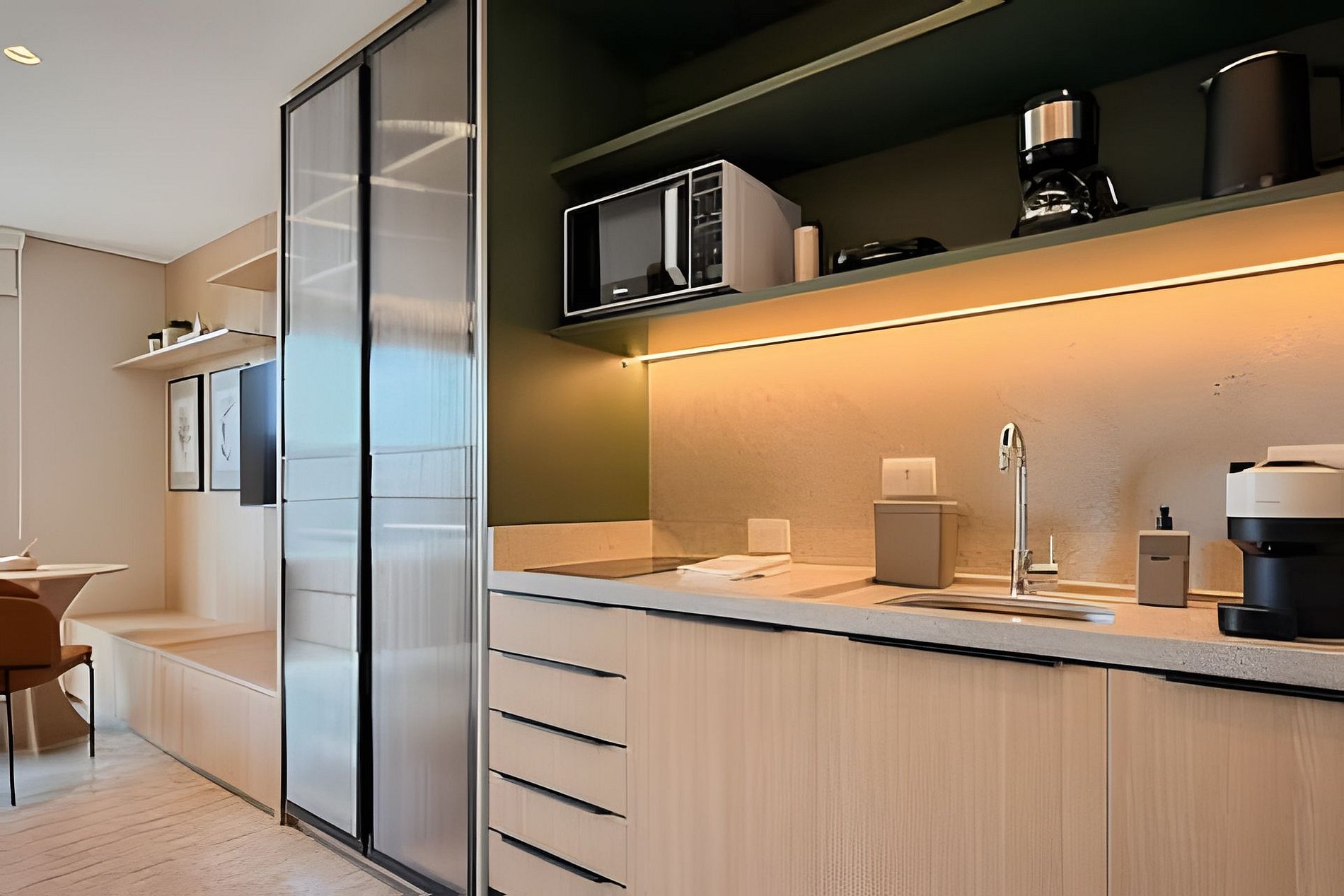 Cada detalhe aqui é pensado para proporcionar uma estadia confortável e prática. Acomode-se em um ambiente moderno e funcional, repleto de comodidades.