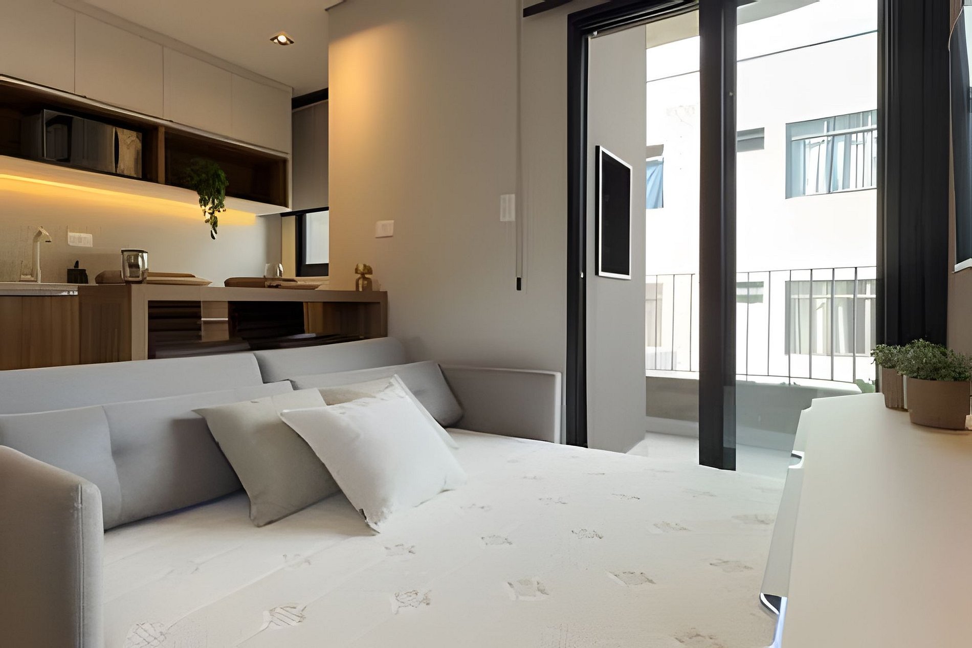 Cada detalhe aqui é pensado para proporcionar uma estadia confortável e prática. Acomode-se em um ambiente moderno e funcional, repleto de comodidades. Itens fornecidos durante a estadia: > Jogo completo de banho: 02 toalhas de banho 70x140cm 02 toalhas de rosto 48x85cm 01 tapete para banheiro 48x80cm > Jogo completo de cama: 01 lençol com elástico 01 lençol sem elástico 02 fronhas 04 travesseiros 40x60cm 01 cobre leito com 02 fronhas 01 manta de microfibra tamanho queen > Itens de higiene: 01 sabonete corporal 40g 01 shampoo 40 a 60ml 01 condicionador 40 a 60ml 01 rolo de papel higiênico Equipamentos e utensílios disponíveis no studio: Louças e talheres: Copos de água Taças de espumante Taças de vinho Canecas Xícaras de café Travessas Pratos de jantar Pratos de sobremesa Bowls Facas de mesa Garfos de mesa Colheres de sopa Colheres de café Utensílios de cozinha: Faca de corte Tesoura Abridor de vinho Utensílios de silicone Panelas com tampas Frigideira Tábua de corte Eletrodomésticos: Secador de cabelo Ferro de passar roupa Sanduicheira Chaleira elétrica Acessórios: Rodinho de pia Jogos americanos Vassoura Rodo Balde Pá Cabides > Comodidades do estúdio: Cama queen padrão Cooktop de indução 02 bocas Cortina black-out para total escuridão TV Smart com canais abertos Ar condicionado Quente/Frio