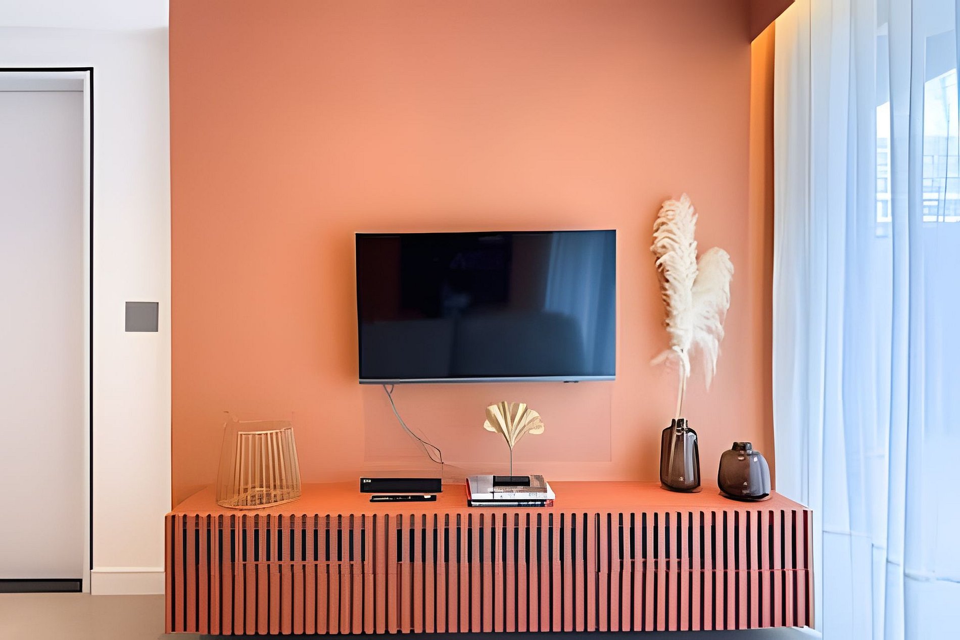 TV Smart com canais abertos na sala