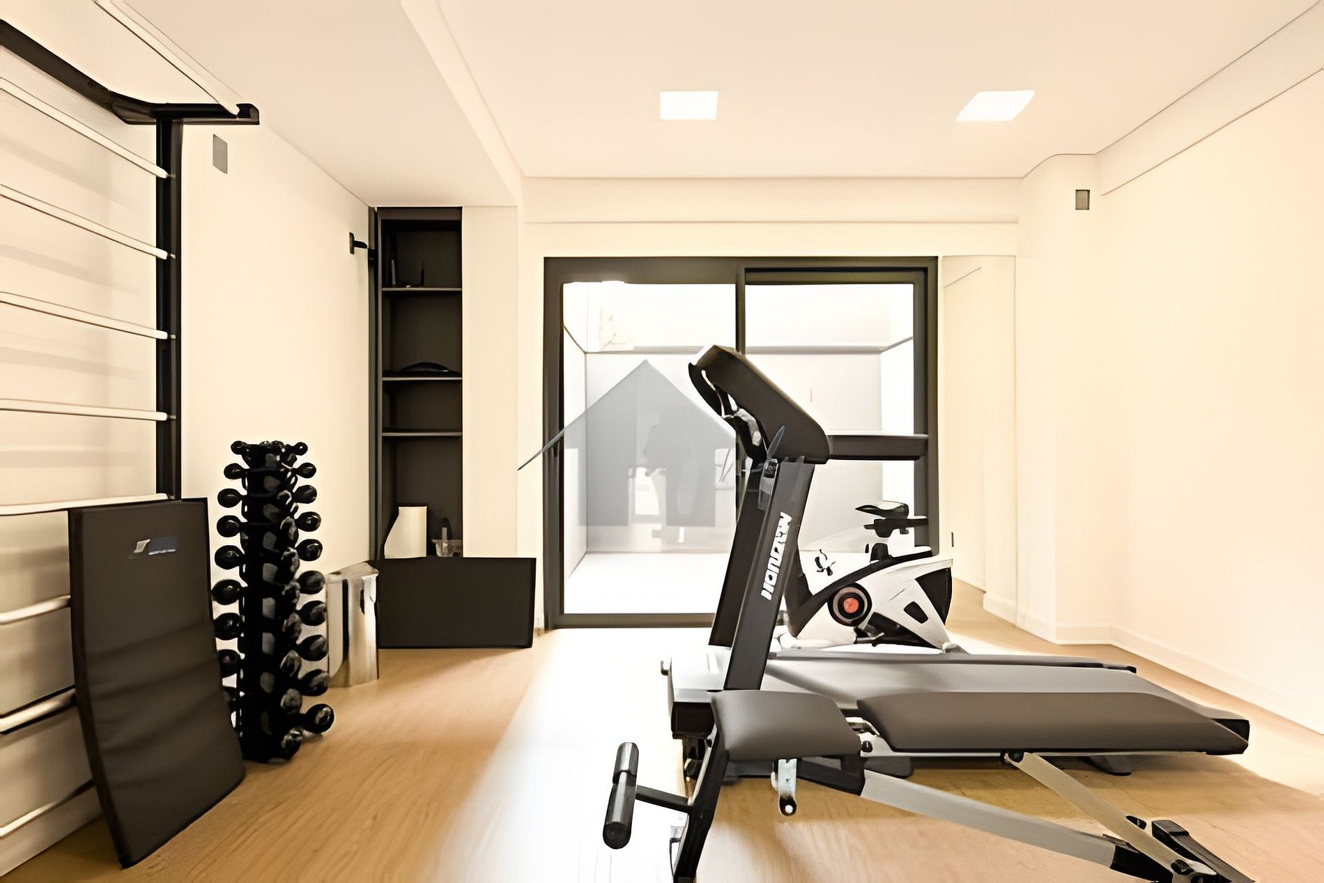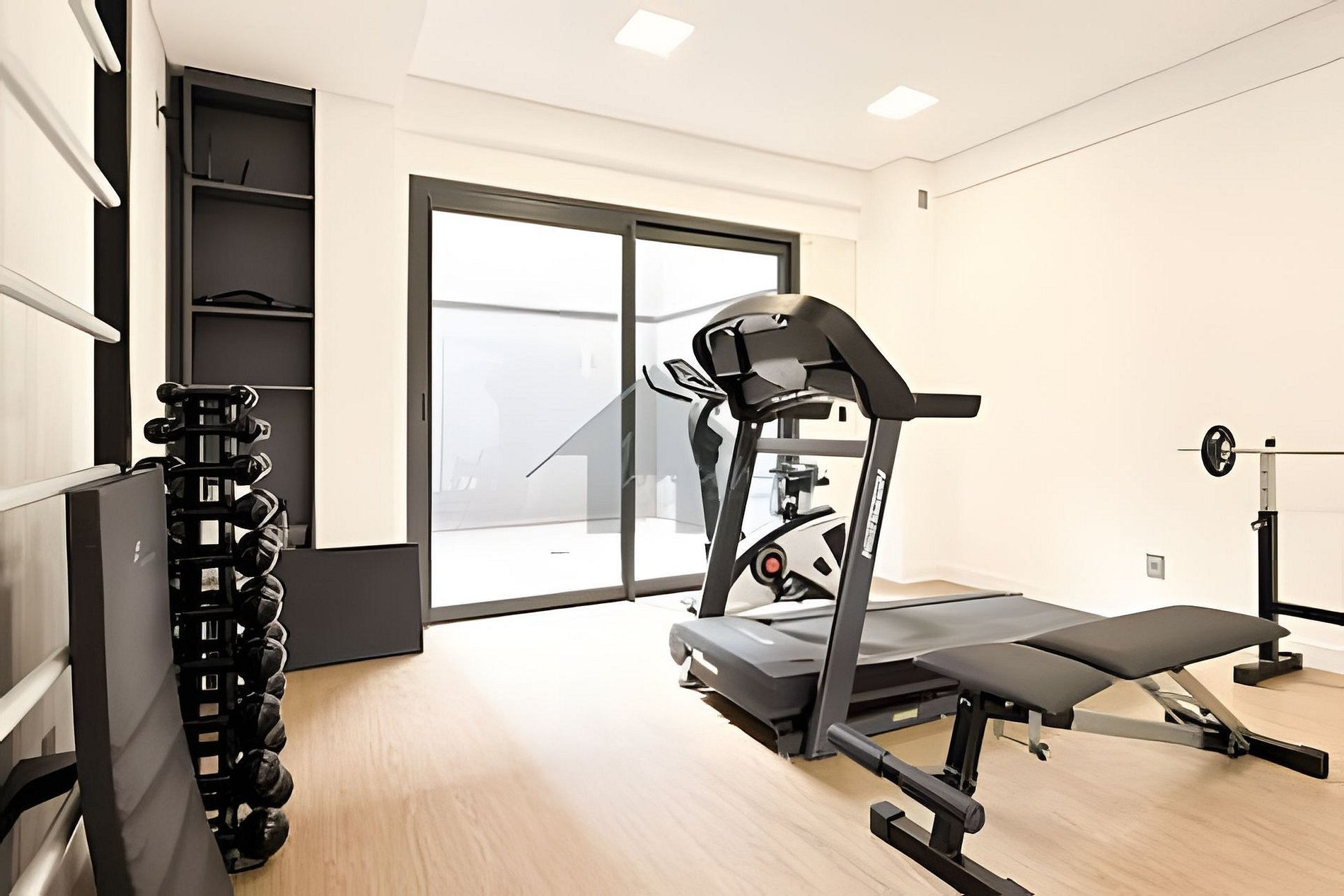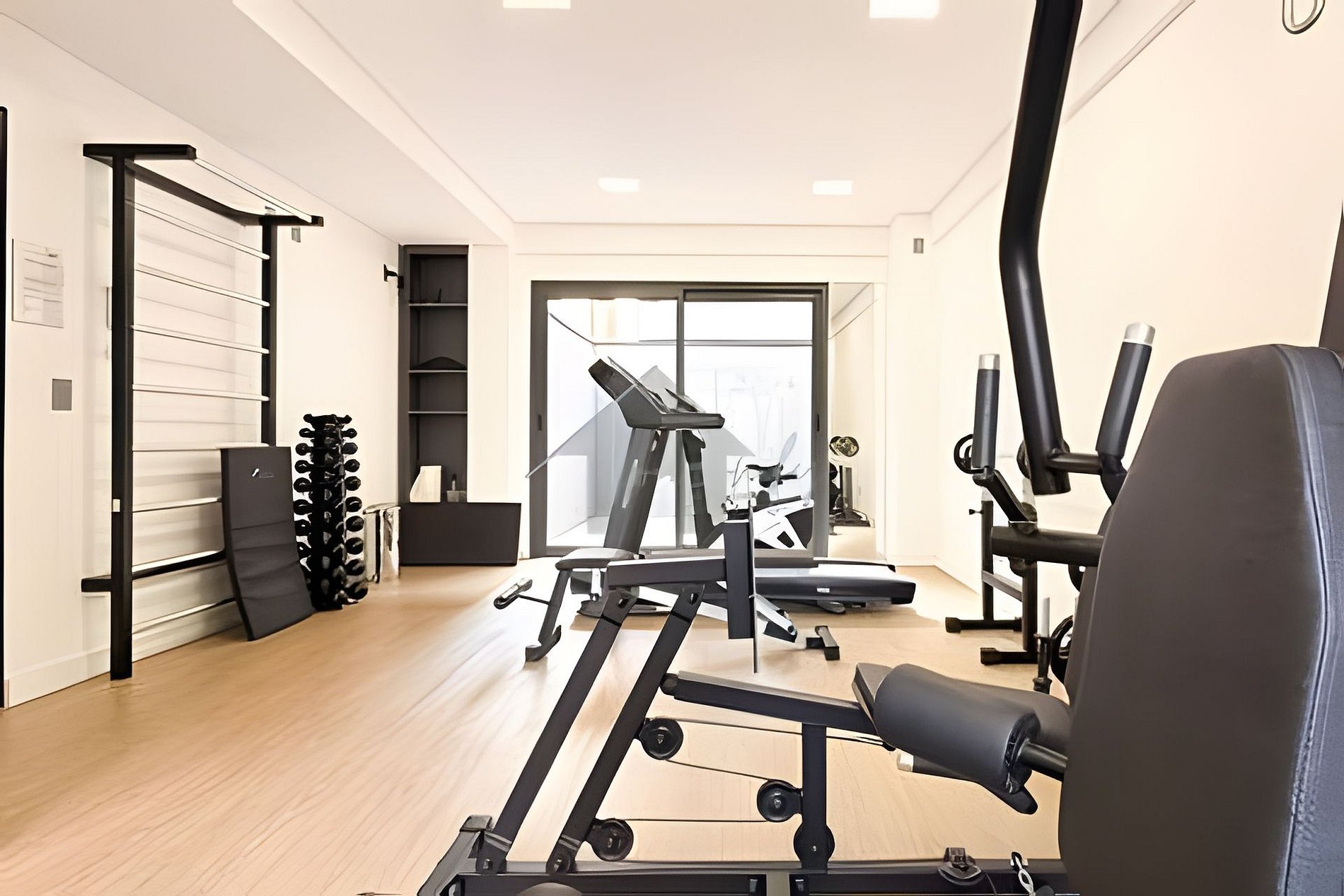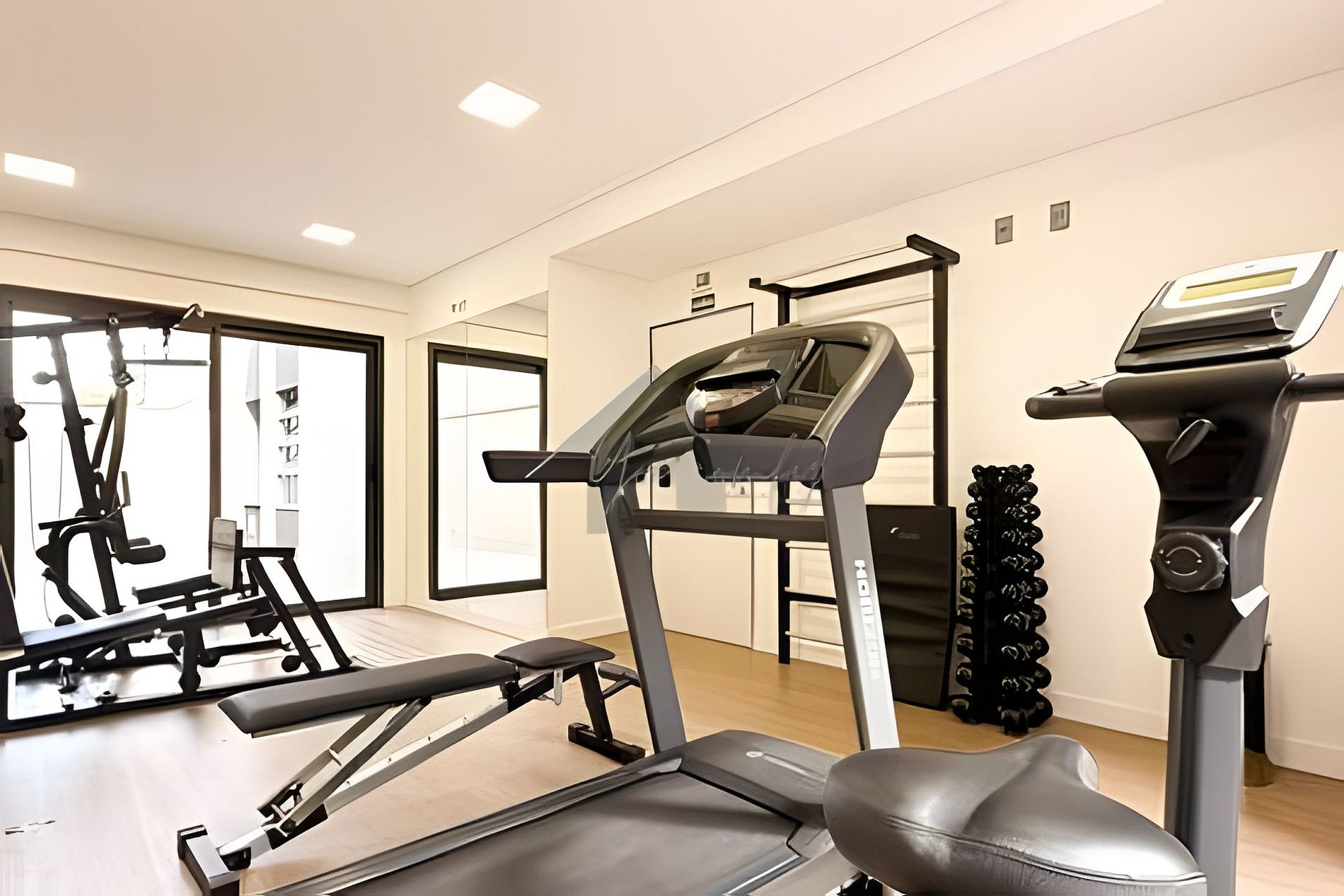 > Academia: Aberta 24hrs, equipada com pesos livres, banco de supino, barra com pesos, espaldar, bike, esteira, tudo para sua comodidade.